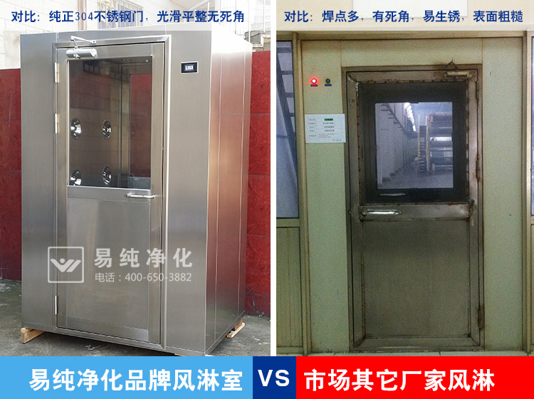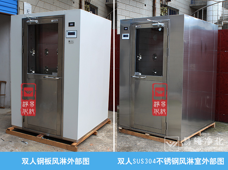1、風淋室的材質:首先從材質上分類主有彩鋼板,鋼板型風淋室和不銹鋼風淋室三種主流材質。其中彩鋼板因質量較差目前已經基本不再使用,鋼板風淋室主要看材質的厚度和噴漆的過程,市場上有的采用0.8-1.0的材質厚度,這種厚度偏薄,容易變形。一般建議在1.2MM或以上的鋼板材質較佳。在噴塑上面,很多廠家都是自噴或者是到小廠家噴塑。這其中有一個最重要的環節就是需要酸洗磷化,很多廠家為了節約成本或者噴塑廠家實力不行,未經過酸洗磷化,如果缺少這個步驟,油漆本身很難與設備粘合,時間一長,很容易整場的脫漆。