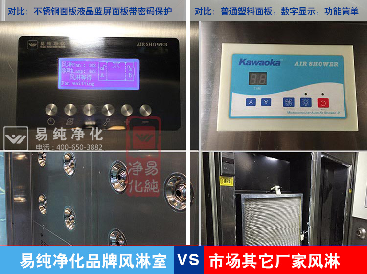 2、控制系統:市場上很多廠家采用數顯系統,為微型電腦線路板,此種電路板價格低廉,穩定性相對較性。易純公司采用PLC控制系統,不銹鋼控制液晶藍屏面板和觸摸屏控制系統,采用正版施耐德控制電器元件,保證產品質量穩定。同時對鍵盤采用加密措施,防止員工任意設置和更改系統設置時間。